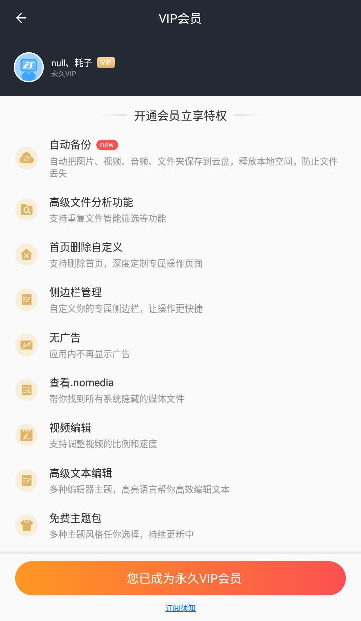 ﹂主题包、首页管理、侧边栏管理、高级文件分析、隐藏系统文件
