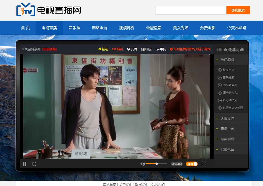 电视直播源码,直接上传到空间就可以使用,全站HTML文件,集电视直播,电影,音乐于一体,给你不一样的视觉效果。