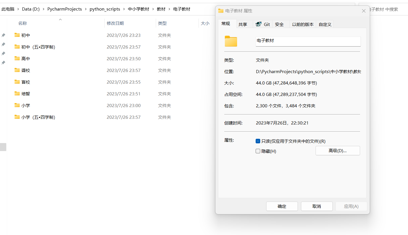 最后,下载完毕总大小44G,总文件数2300。
