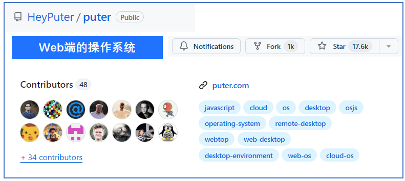 近日Puter官方发布消息,经过三年的努力,Puter用户已经超过100多万,同时,开源代码已经在github上获得17K多个star。