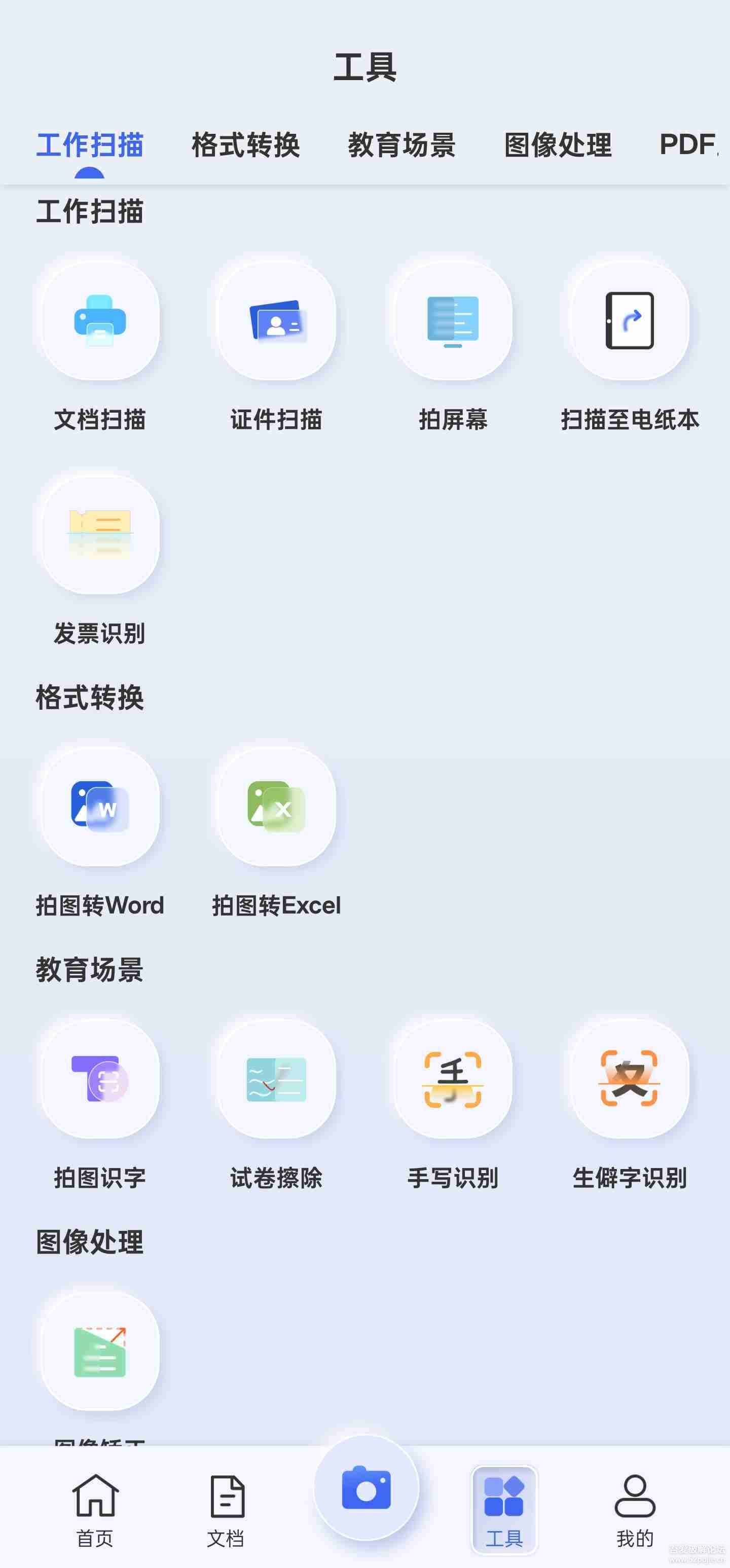 拍摄图片可以将图片一键转换成PDF、Word、excel等多种格式的文件,并对文档进行修改